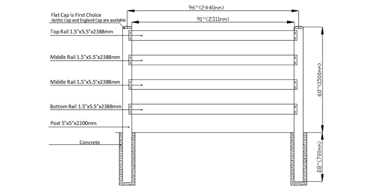 High quality 4 rails white vinyl horse fence